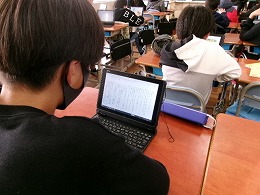四日市市立図書館が電子図書の貸し出しを10月から始めています。今日は6年生が電子図書を活用して読書をしていました。「教室で読めるから便利」「もう少し本の数があるといい」などの感想もあり、子どもたちはしっかりと使いこなしています。