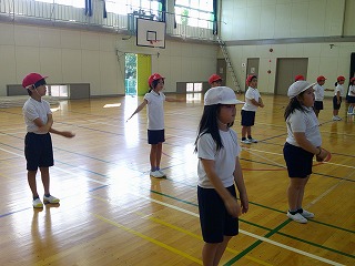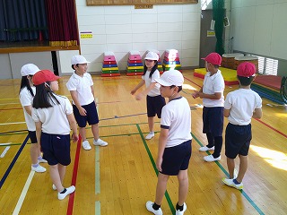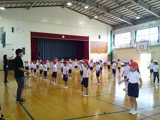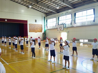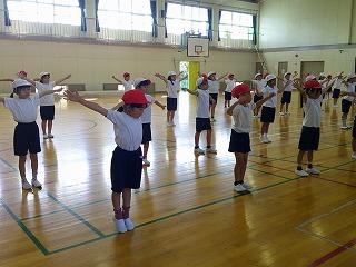 先週から、各学年で運動会の練習が始まっています。2年生は「ラジオ体操」からきちんと学習しました。「ここは、ピッと手を伸ばすよ。」「ここでは足をピタっとくっつけるよ。」「そうするとかっこいいよ。」と担任から教えてもらいました。とても上手に体操している様子がありました。