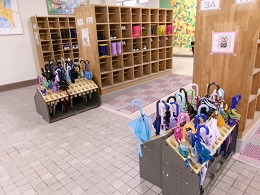 今日は登校の時間に強い雨が降っており、とても歩きにくい中子どもたちは元気に登校してきました。そんな中でも、しっかりと1列に並んで歩いていました。