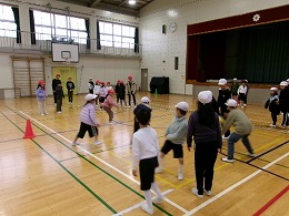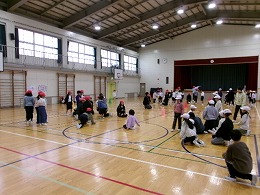リーダーとしての自覚をもち、責任をもって行動することができる。低学年は教えてもらいながら異学年で交流する楽しさを味わうことができる。このようなねらいもありました。狭い場所での活動となりましたが、とても楽しんで活動していました。