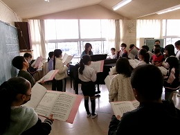 4年生が音楽の時間に「あなたに会えて・・・」を合唱していました。音楽室前の廊下を歩いていると、素敵な歌声が聞こえてきました。思わず音楽室の中へ入り、合唱を聴いていました。きれいな声が重なり合ってとても素敵な合唱でした。