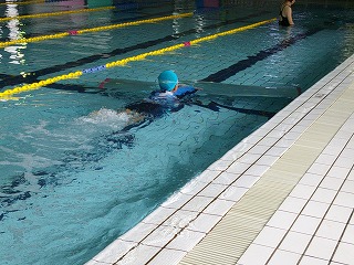 3年生は泳いでいるところを見に行きました。どの子も、自分の力に合わせて一生懸命に練習する姿がありました。