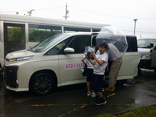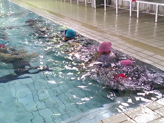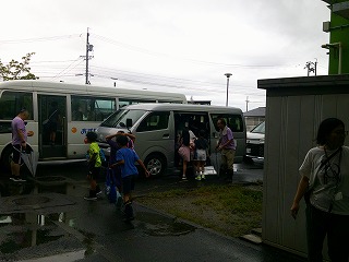 学校にスイミングが迎えに来てくれ、バスやワゴン車に分かれて分乗しスイミングのプールに出かけます。「いってきま~す。」と元気に出かけていきました。その後、スイミングでは、3つのグループに分かれます。子どもたちの経験等で分けていただいています。それぞれのコースに担当のコーチがついてくださり、丁寧に見ていただきました。帰りもバスで学校へ送っていただきました。