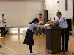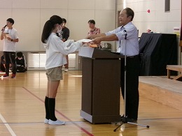 表彰式は三泗小中社会科展・科学展、読書感想文、陸上記録会についての表彰でした。それぞれ6年生が代表して賞状を受け取りました。