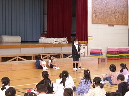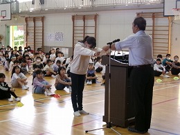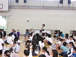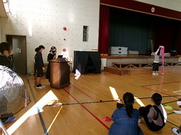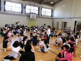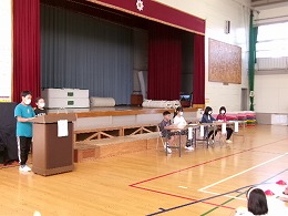 5限目、体育館に全校児童が集まり、表彰式、全校で語り合おう会、生活集会委員会からの連絡を行いました。