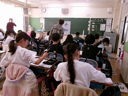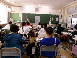 今日はA組もB組も書写の時間があり、後ろから授業の様子を見ていました。特に良かったのが姿勢の良さです。「筆を立てて書こう」と言葉かけがあると、自然と姿勢が良くなっていきました。一生懸命に取り組んでいるのが伝わってきました。