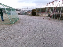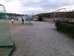サッカーゴールの後ろの草の上が真っ白になっていました。そんな寒い中でも、子どもたちは元気に遊んでいました。
