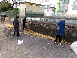 本日は環境ボランティアの日でした。9:00より学校東側の石垣に沿って落ち葉の掃除をしていただきました。忙しい中ありがとうございました。
