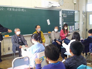4年生は地域の学習をする中で、神前地区同和教育推進協議会(同推協)の学習をしています。「いつごろ、同推協はできたのですか」「どのような活動をしているのですか」「どうして人権かるたを作ったのですか」「どのような思いだったのですか」などど、子どもたちが疑問に感じたことを順に教えてもらいました。