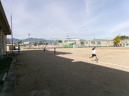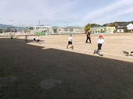 体力づくりの取り組みとして体育の時間にかけあしに取り組んでいます。