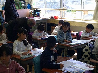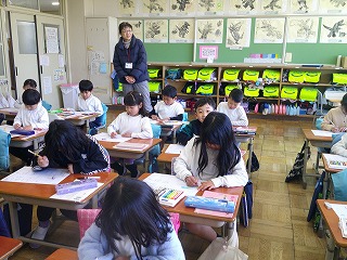 その際、子どもたちの様子を見ていただいています。登校時や下校時、行事などのときにも関わっていただくことも多く、子どもたちもよく知っているので、三人の方たちが教室に入ると、にっこりする子もいます。