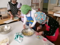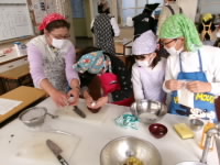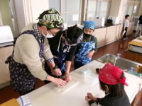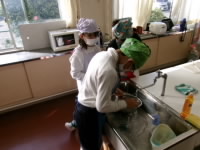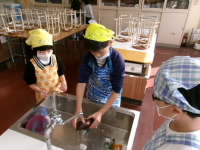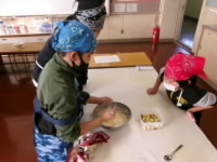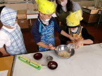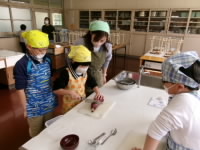 洗う作業や切る作業、混ぜる作業など、他の子がするときには興味津々にのぞき込んだり、教えあったりしながら、楽しく作業を進めることができました。