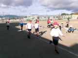 今日は思ったより暖かくなりました。ウォームアップのときには上着を着て走りましたが、本番は体操服で元気に走りました。