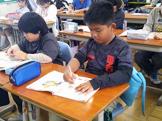 4年A組の子どもたちは、自分と重ねて考えていました。まずは、「自分だったらこうするかなあ…」「こういうことを気を付けるといいかもなあ…」と。それを自分だけで考えるのではなく、友だちと共有します。友だちと話していくと、どんどん自分の考えが深まり、まとまってきます。今日は、そういう授業でした。みんなで考えあうことは大切なことです。