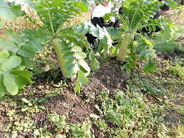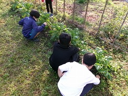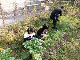 畑のダイコン、ニンジンの観察と草ぬきを行いました。ダイコンが大きく育ち、間もなく収穫を迎えます。子どもたちからも「もう抜けそうだよ」と声が出ていました。