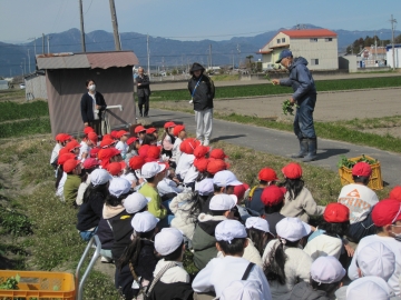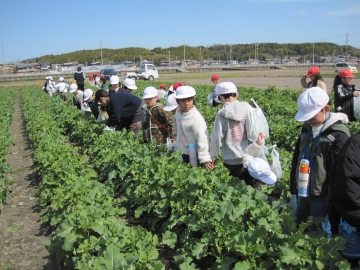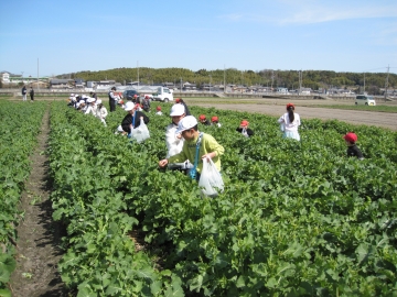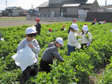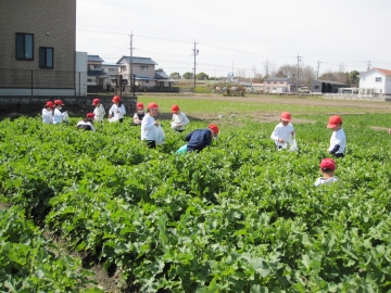 なかなか、子どもたちがそのような経験をすることはないので、行かせてもらうことにしました。天気がいい中、たくさんのなばなを摘ませていただきました。子どもたちからは、「へぇ、こんなふうにとるんだね~」「ぱきって上手にとれたよ。」と喜びの声が上がりました。とったなばなは各自、家に持ち帰りました。家で、どんな料理をしてもらったのかなあ…。