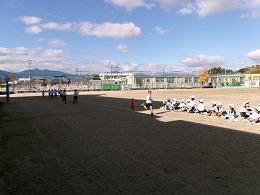 1年生も体力づくりの取り組みとしてかけあしに取り組んでいます。