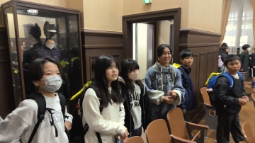 大学キャンパスツアーです。立命館大学におじゃましています。「大学って、こんなに大きいんだあ…」「すごくたくさんの本があるねえ…」「この教室って、どういうことを勉強しているのかなあ…」と興味津々の子どもたちでした。