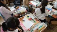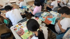 5年生では、図工の時間に、季節ごとの絵を画用紙いっぱいに描く活動をしています。
