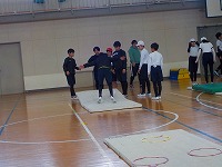 6年生にとって小学校生活も残り2か月足らずとなりました。体育館でマット運動に取り組んでいました。伸膝前転や伸膝後転等難しい技にも挑戦しています。