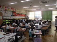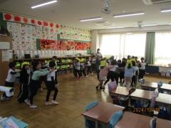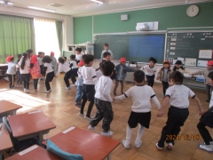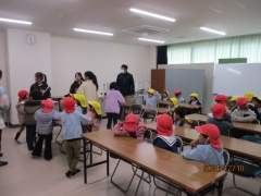 保育園の皆さんは、20分休みに到着しましたが、1年生以外の子どもたちも興味津々。知っている子に手を振ったり、中には進んで園児のお手伝いをしたりする子もいました。