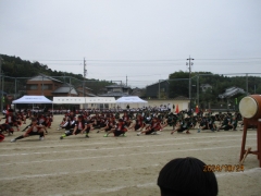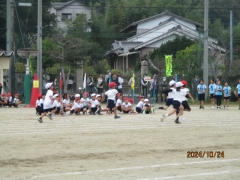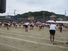途中降雨が予想されますので、表現運動と徒競走を入れ替えて行います。