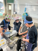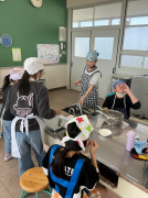1学期の調理実習時と比べ、てきぱき協力して調理・片づけを行う様子が見られました。給食を食べた後でしたが、「自分たちで作ったから美味しい」と満足そうな様子でした。
