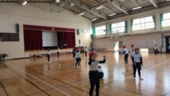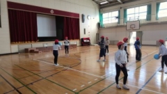 今年は南中学校で、近くの小学校・中学校の子どもたち同士で、レクリエーションの発表をしました。