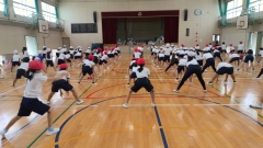 少しずつ涼しくなってきて、体育館での運動会練習が始まりました。3・4年生で集まっての練習は初めてですが、みんな緊張感を持ちながら楽しそうに練習しています。