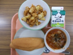 米粉パン 牛乳 ハニーマスタードチキン ミネストローネちき