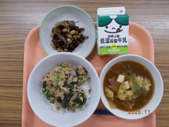 ツナ丼 牛乳 ひじき豆 みそ汁