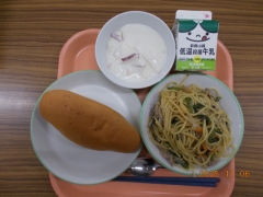 小型玄米パン 牛乳 和風きのこスパゲッティ りんご入りヨーグルト