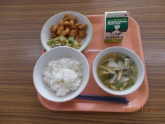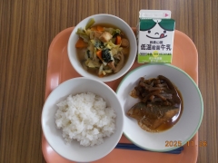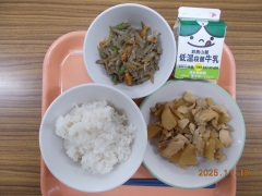 米飯 牛乳 鶏肉の照り煮 ごぼうの中華きんぴら