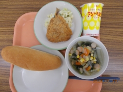 米粉パン はっこう乳 あじフライ マカロニサラダ 白菜スープ