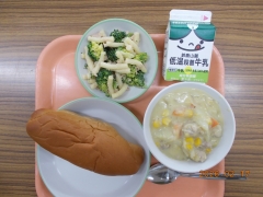 黒糖パン 牛乳 コーンクリームシチュー ブロッコリーサラダ