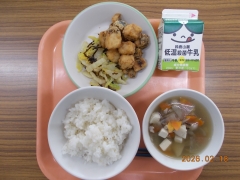 米飯 牛乳 あじの香味あげ こんぶあえ のっぺい汁