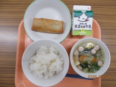 米飯 牛乳 手作り春巻き 中華スープ