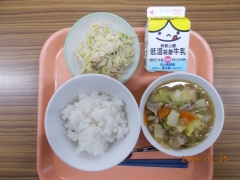 米飯 牛乳 八宝菜 春雨サラダ