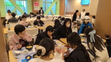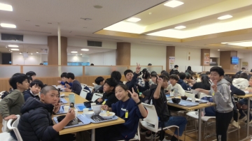 京都大学の食堂にて昼食です。朝早かったこともあり昼食が待ち遠しかったようです。好きなメニューを選んで食事です。