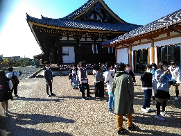 本日、最初の見学地、三十三間堂を見学しました。千体にもおよぶ千手観音像に驚いたり、風神雷神の迫力を感じたりしました。
