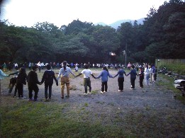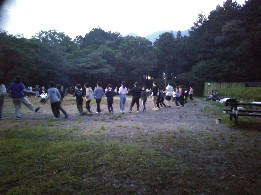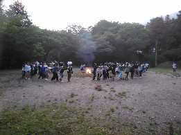 今、キャンプファイヤーが終わりました。少し明るい中でのファイヤーになりましたが、とても楽しい時間になりました。みんなで盛り上がりました。