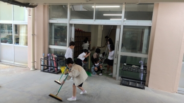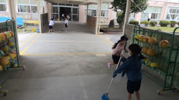 1年生が朝から掃除をしてくれていました。運動会の後掃除をしていないため、自分たちの靴箱の周辺に砂がたくさんありました。みんなで綺麗に砂を掃いていました。ありがとう1年生。