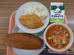 黒糖パン 牛乳 ほっけフライ ポテトチーズ ミネストローネ