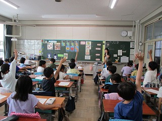 4年生が食育で「よくかんで食べよう」をテーマに学習しました。「よくかんで食べよう」は、先日配付した「きゅうしょくだより6月号」にも、今月の給食目標として掲げているものです。