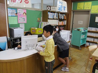 図書委員は本の貸し借りや図書の整理を行っていました。何人かの子が静かに読書を楽しんでいました。