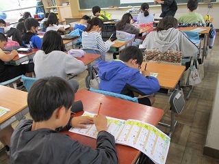 朝の学習の様子です。1限目が始まるまでの時間、読書をしたり漢字の学習をしたりと