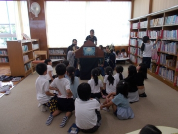 今日は、10月6日の中秋の名月に向けてブックママさんたちが「月」に関する本や紙芝居を読んでくださいました。1冊目は「つきをあらいに」2冊目は「いのしししのすもう」でした。読み聞かせの部屋にはススキも飾ってあり、お月見の雰囲気の中で子ども達も絵本の世界を楽しみました。10月6日は絵本のようにまん丸の月が見れるといいですね。ブックママさんありがとうございました。