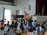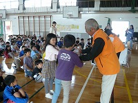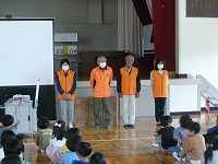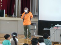 先日、防災時のための保存水を、川島地区防災協議会より頂きました。昨年まではコロナ禍ということもあり、校長室で目録を頂いていましたが、今年は1年生が体育館で防災についての話を聞いた後、会長の高橋輝夫様より、7年間保存の水(2L・96本)をいただきました。災害に備えて学校に保管しておきたいと思います。