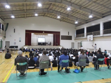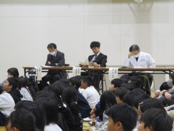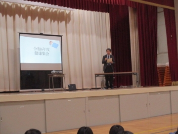 5限目、体育館にて学校保健委員会を行いました。4,5,6年生の児童と学校医、学校歯科医、学校薬剤師の先生、コミュニティスクール、PTAの方々にも参加していただいての委員会となりました。