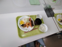 みんなで朝食をいただきました。しっかり食べることができました。この後は、部屋の片付けをしたら、野外炊事になります。